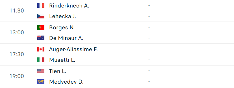 (Lịch thi đấu tennis hôm nay) - Tay vợt người Mỹ gốc Việt Learner Tien sẽ có lần thứ 2 đối đầu với Daniil Medvedev chỉ trong chưa đầy 2 tuần, đồng thời là lần thứ 3 đôi bên gặp gỡ trong năm 2025.
