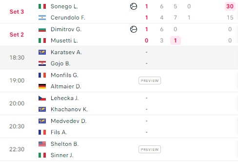Trong khi đó, tâm điểm ở những giải đấu quần vợt hàng đầu thế giới sẽ là cuộc chạm trán giữa Jannik Sinner và hiện tượng Ben Shelton. Một số tay vợt đáng chú ý khác như Daniil Medvedev, Casper Ruud, Taylor Fritz... cũng sẽ ra sân thi đấu.
