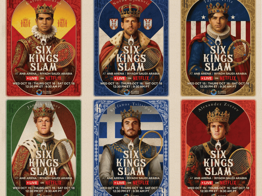 Giải tennis giao hữu Six Kings Slam 2025 sẽ diễn ra từ ngày 15/10 đến 18/10 tại Riyadh, Ả Rập Xê Út, là một phần của "Mùa giải Riyadh" gồm các môn thể thao như tennis, bóng đá, boxing, đấu vật biểu diễn, v.v. Sự kiên này quy tụ 6 anh tài hàng đầu làng banh nỉ thế giới: Novak Djokovic, Carlos Alcaraz, Jannik Sinner, Alexander Zverev, Taylor Fritz và Stefanos Tsitsipas.
