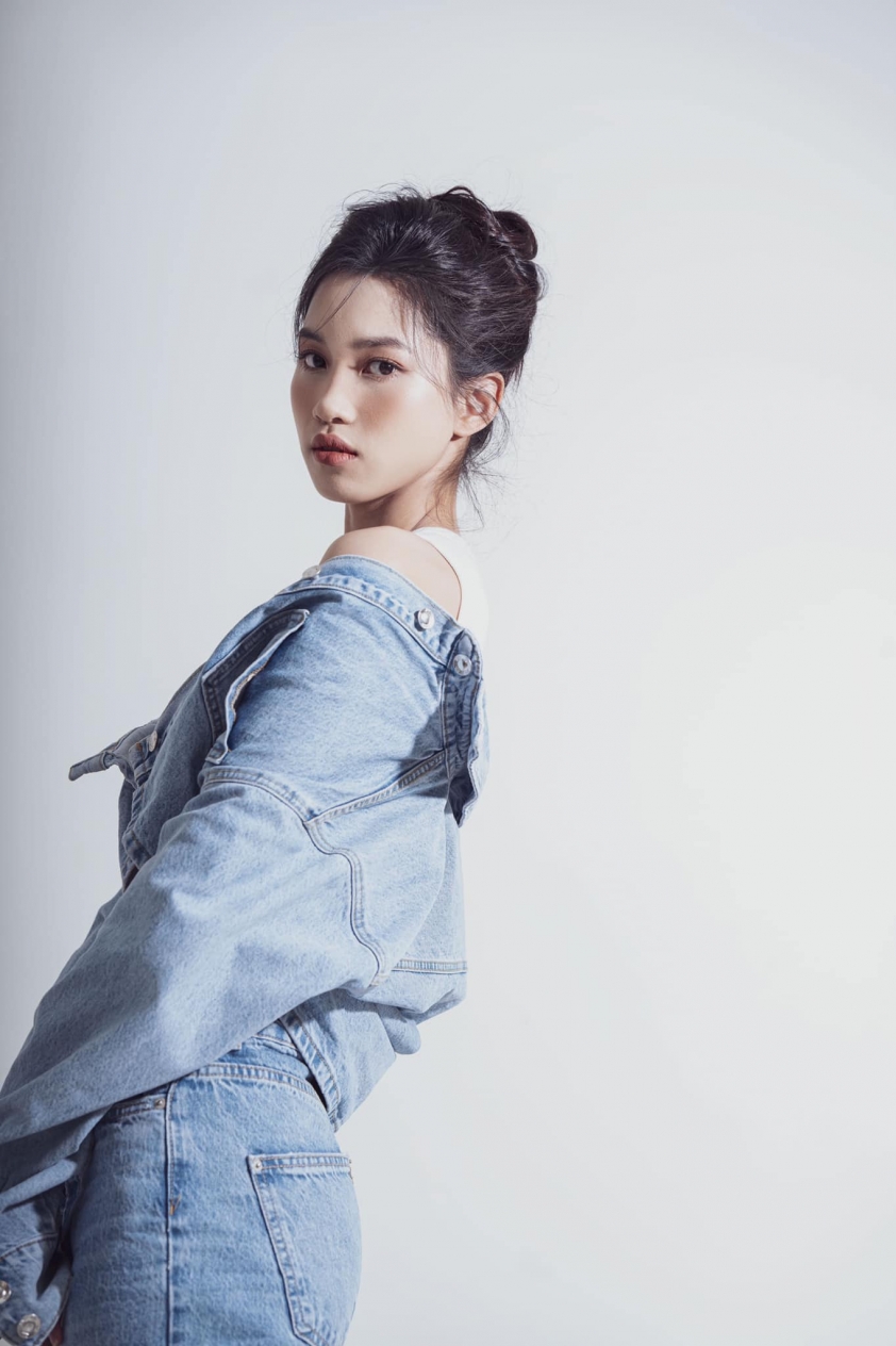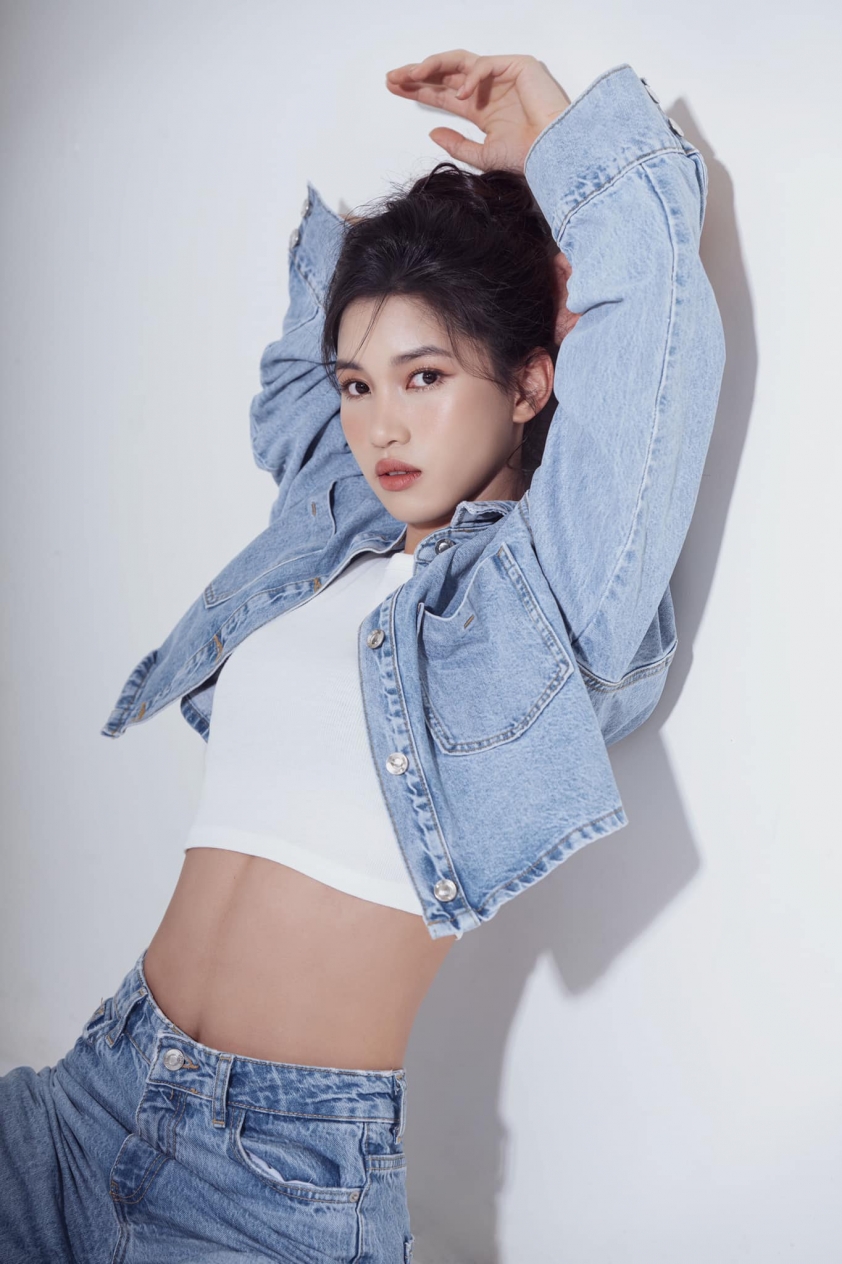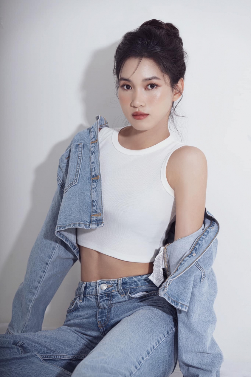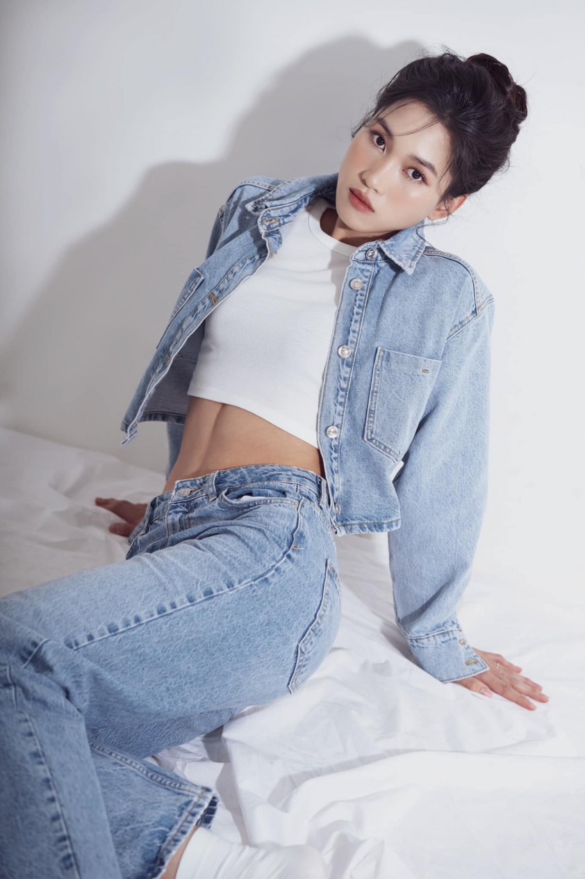 Ở bộ ảnh này, chủ công số 17 của Binh chủng Thông tin diện bộ quần áo bò, mặc với chiếc áo croptop 3 lỗ trắng kết hợp với khả năng tạo dáng chẳng thua kém gì người mẫu giúp toát lên những nét đẹp khỏe khoắn, cuốn hút.