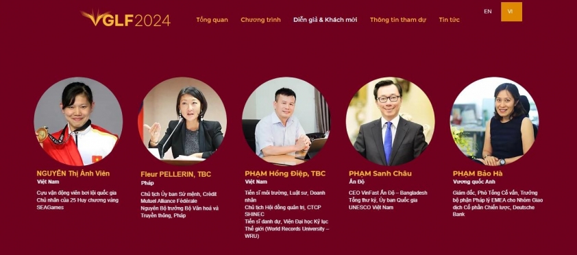 Diễn đàn Người Việt có tầm ảnh hưởng 2024 - VGLF 2024 diễn ra trong hai ngày 30, 31/3 tại thủ đô Paris, Pháp theo sáng kiến của Tổ chức Khoa học và Chuyên gia Việt Nam Toàn cầu (AVSE Global) là sự kiện có quy mô rất lớn, có sự góp mặt của những cá nhân người Việt và gốc Việt ưu tú trên toàn thế giới như Giáo sư Toán học Ngô Bảo Châu, cựu Đại sứ Việt Nam tại Ấn Độ - ông Phạm Sanh Châu, cựu Phó Thủ tướng Đức - ông Philipp Roesler hay Giáo sư Vật lí Trần Thanh Vân, v.v.