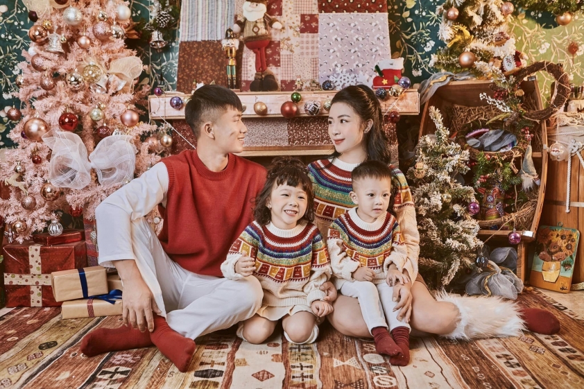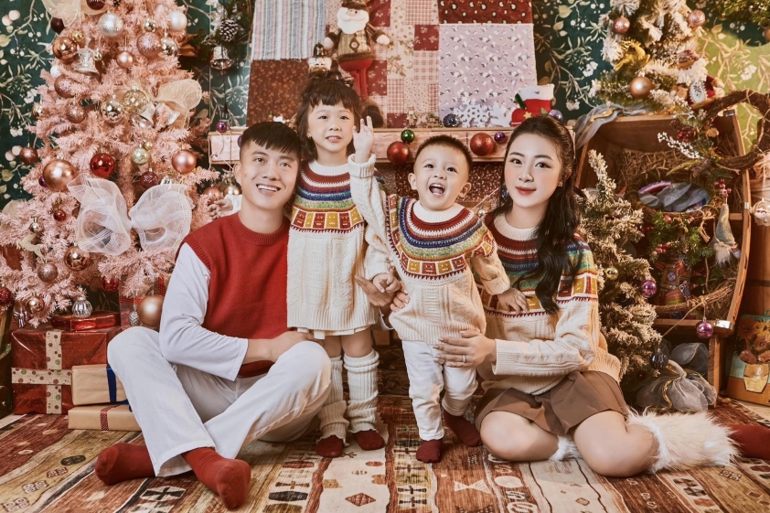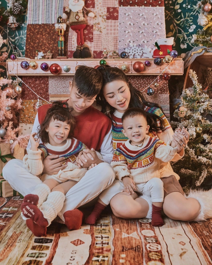 Gia đình Văn Đức - Nhật Linh vừa chụp một bộ ảnh lưu lại khoảnh khắc ấm cúng đón Giáng sinh.