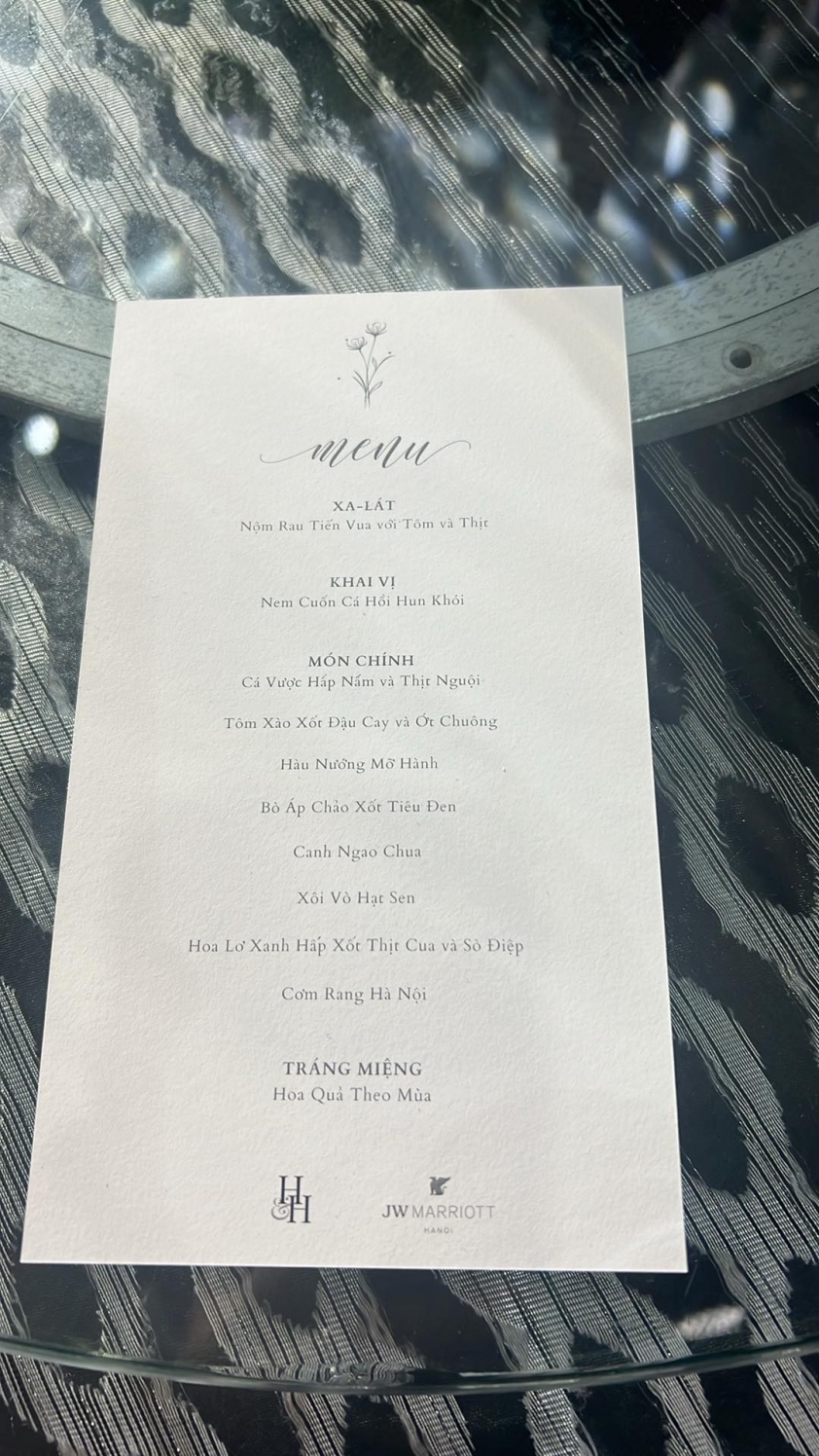 Trước giờ G, thực đơn đãi khách cũng đã được hé lộ. Theo đó, menu của đám cưới lần 2 được Quang Hải - Chu Thanh Huyền mời bao gồm: Nộm Rau Tiến Vua với Tôm và Thịt, Nem Cuốn Cá Hồi Hun Khói, Cá Vược Hấp Nấm và Thịt Nguội, Tôm Xào Sốt Đậu Cay và Ớt Chuông, Hàu Nướng Mỡ Hành, Bò Áp Chảo Sốt Tiêu Đen, Canh Ngao Chua, Xôi Vò Hạt Sen, Hoa Lơ Xanh Hấp Xốt Thịt Cua và Sò Điệp, Cơm Rang Hà Nội, Hoa Quả Theo Mùa tráng miệng.