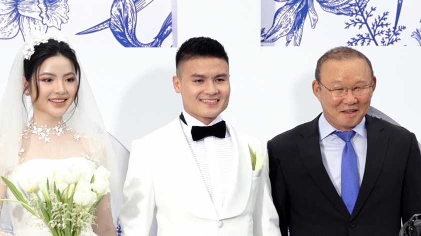 Đám cưới ngày 28/3 của cặp đôi Quang Hải - Chu Thanh Huyền vinh dự được HLV Park Hang-seo cùng nhiều tuyển thủ Việt Nam đến dự. Tuy nhiên, do bận lịch tập trung câu lạc bộ nên họ đa số đến muộn.