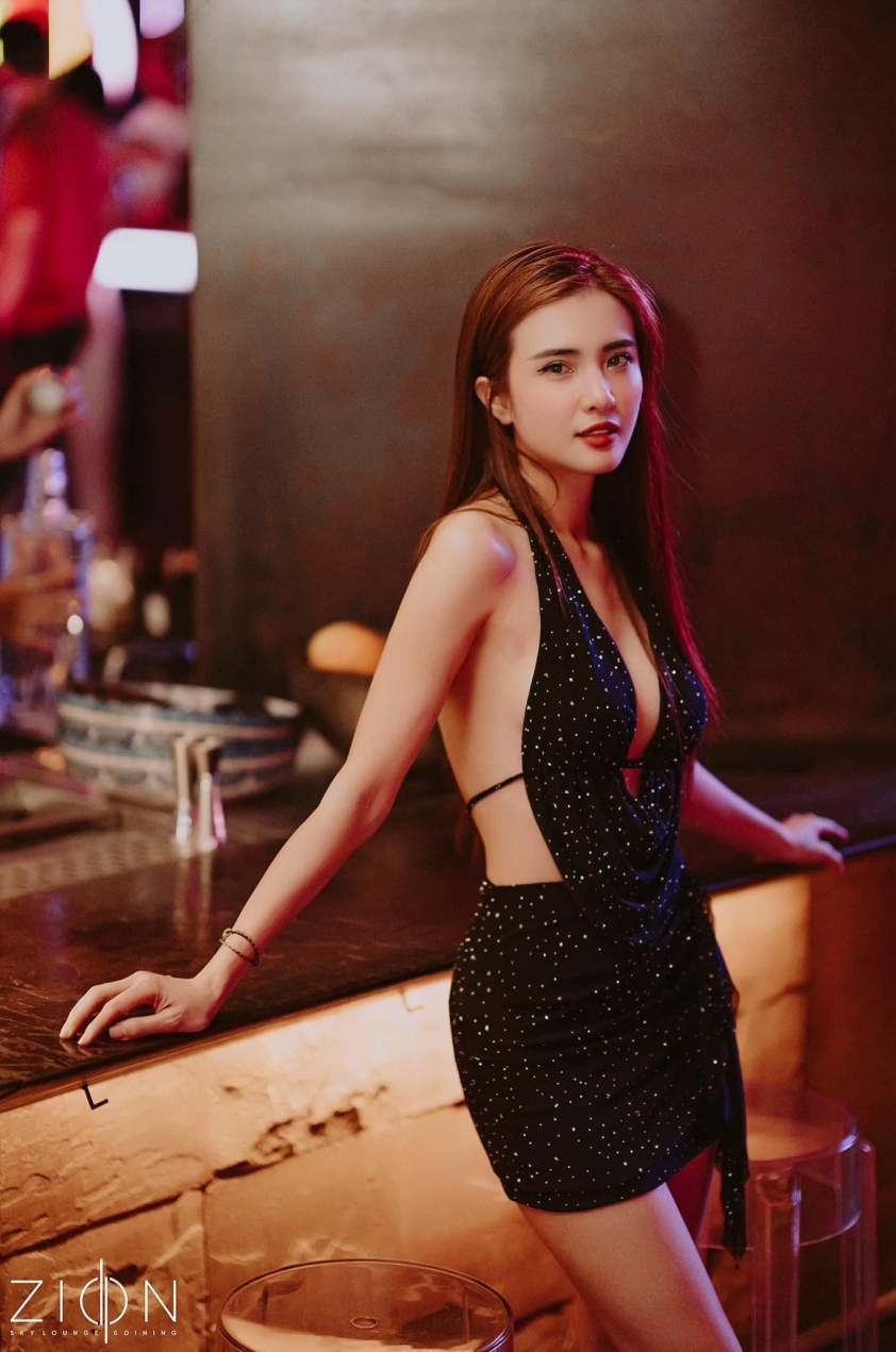 Những thiết kế khoe ngực đầy dường như là sự lựa chọn hàng đầu của Khánh Chi. Cô nàng được khen "gái 1 con trông mòn con mắt" khi thả rông, phô dáng nuột với váy ánh kim vô cùng nổi bật.