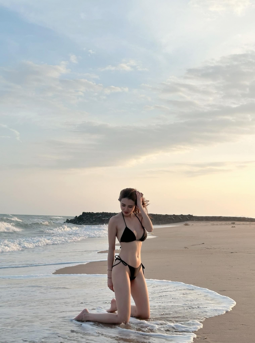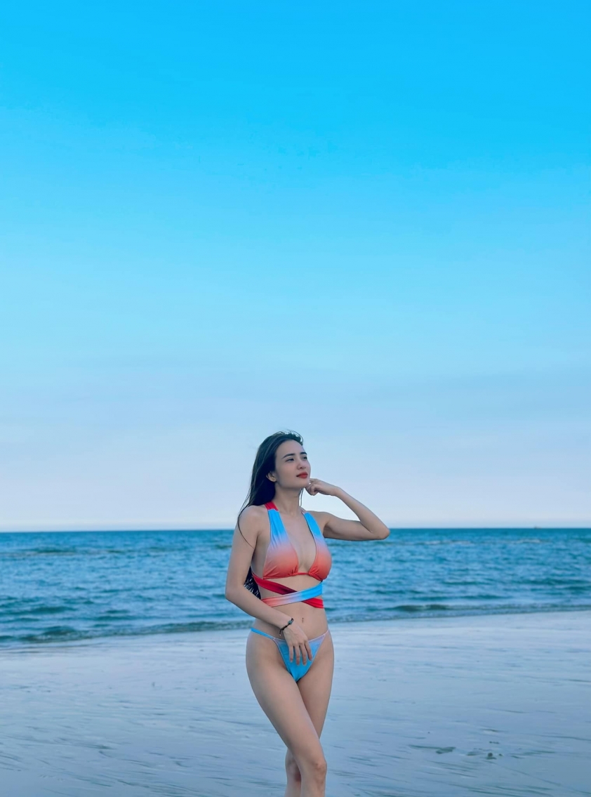 Mới đây, em gái Công Vinh gây chú ý khi chia sẻ loạt ảnh khoe vóc dáng chuẩn đồng hồ cát trong chuyến du lịch biển. Người đẹp lựa chọn mẫu đồ bơi hai mảnh, phô trọn "cặp tuyết lê" đầy đặn cùng vòng eo không chút mỡ thừa. Đi kèm với đó, Lê Khánh Chi thả thính cực ngọt: "Em không đủ đẹp để làm anh say nắng nhưng em đủ nóng để sưởi ấm trái tim anh".