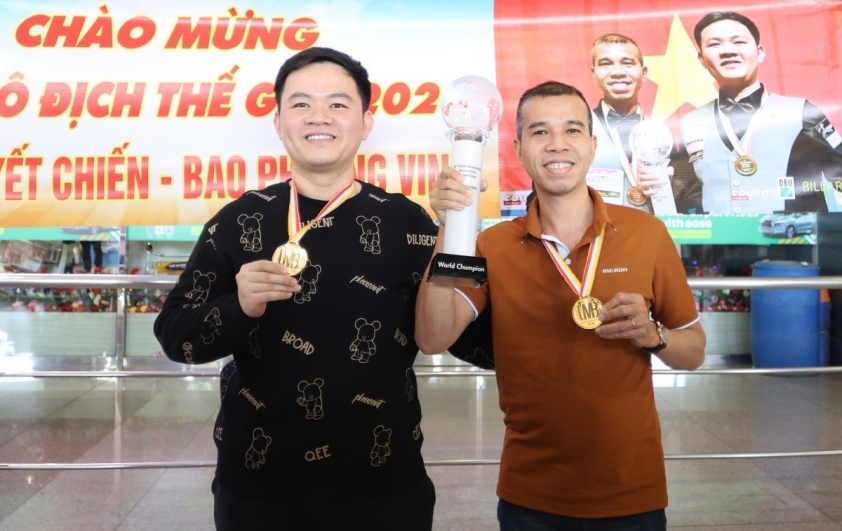 Tân vô địch billiard carom 3 băng đồng đội thế giới Trần Quyết Chiến và Bao Phương Vinh về nước