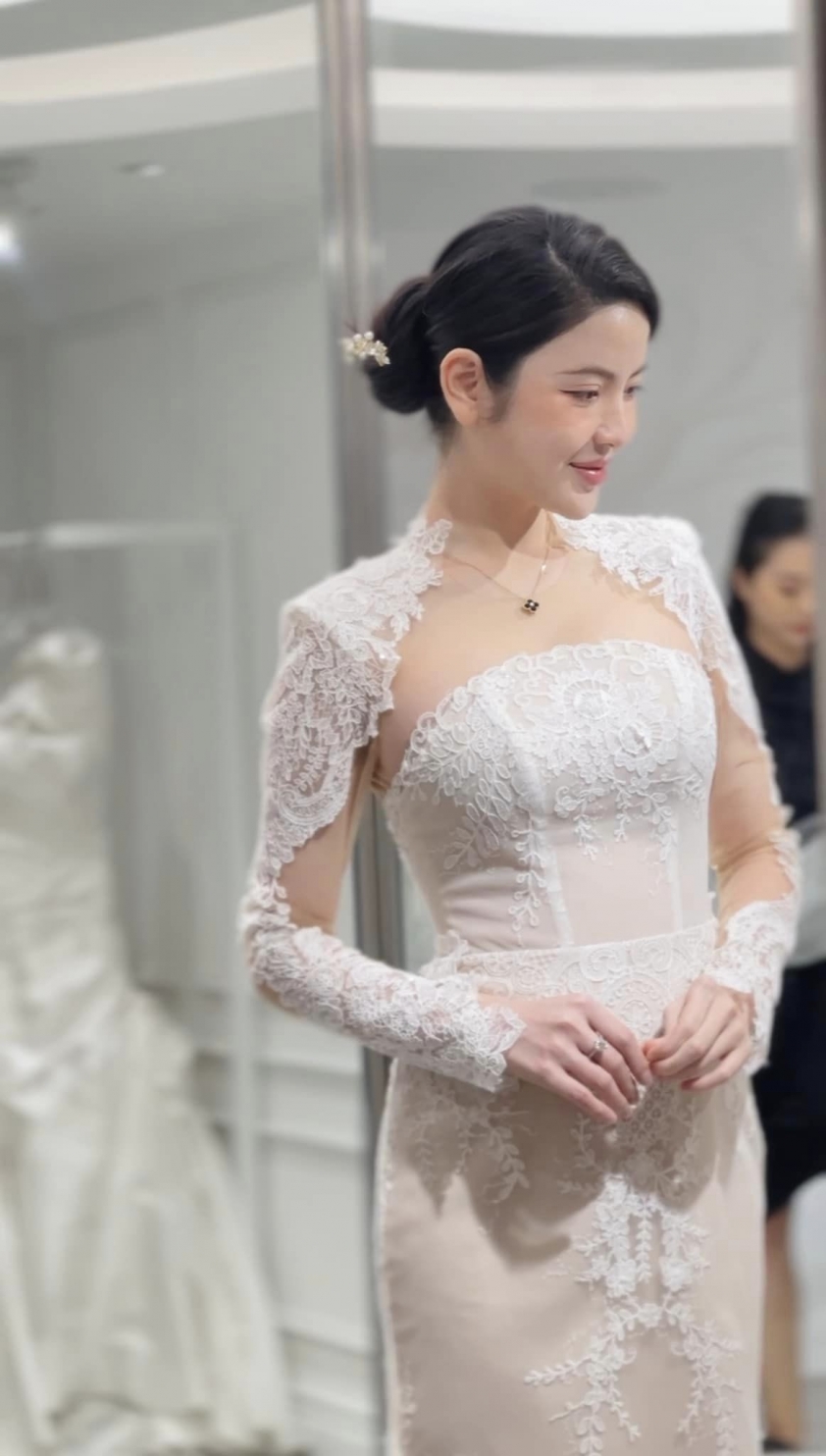 Trên trang cá nhân, Chu Thanh Huyền mới đây khiến dân tình "đứng ngồi không yên" khi chia sẻ hình ảnh đi thử váy cưới. Bà xã Quang Hải lựa chọn thiết kế được đính kết công phu, tôn đường cong hình thể đẹp như tạc tượng. Có thể thấy, dù không trang điểm cầu kỳ, song Chu Thanh Huyền vẫn xuất hiện vô cùng kinh diễm, sang trọng.