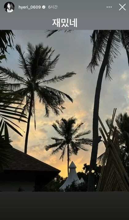 Giữa những tin đồn, Hyeri đã đăng tải một câu chuyện lên Instagram với chú thích “ thật hài hước ” hoặc “ thú vị ” cùng với bức ảnh chụp cây cọ, biểu tượng của Hawaii. Ngoài ra, ngôi sao này còn hủy theo dõi bạn trai cũ trên Instagram.