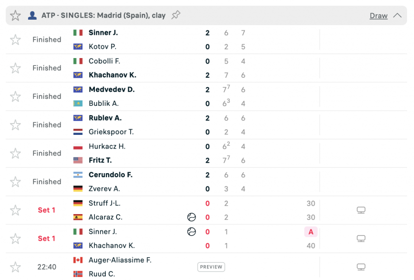 Kết quả ATP Madrid Open 2024 - Vòng 1/8 đơn nam