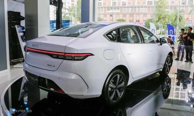 Nhìn từ bên ngoài, SEAL 5 mang phong cách trẻ trung và hiện đại hơn nhiều mẫu sedan truyền thống. Kích thước xe lớn ngang, thậm chí nhỉnh hơn một chút so với các mẫu trong cùng phân khúc như Corolla Altis hay Civic. Phần đầu xe bo tròn nhẹ, dải đèn LED mảnh tạo hiệu ứng sang và tương lai, trong khi thân xe giữ dáng thuần sedan, không pha SUV nên nhìn vẫn rất thanh lịch.