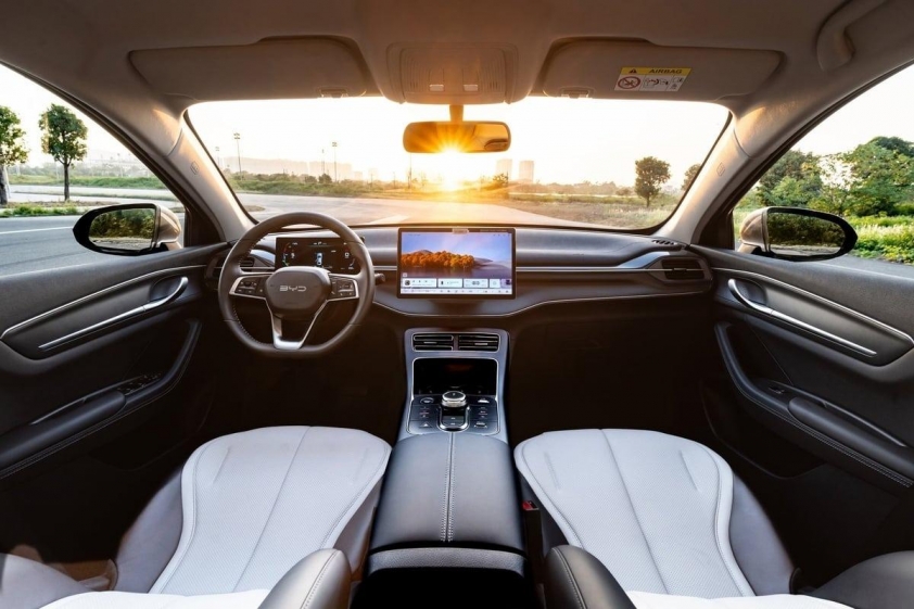 Bên trong khoang lái, BYD tiếp tục thể hiện thế mạnh công nghệ. Màn hình trung tâm kích thước 12,8 inch có thể xoay ngang hoặc dọc, cảm ứng nhạy, giao diện dễ dùng. Ghế ngồi bọc da, chất lượng hoàn thiện tốt, không thua kém xe Nhật ở cùng tầm giá. Hệ thống camera 360 độ, cảm biến quanh xe, điều hòa độc lập cùng dàn âm thanh ấn tượng giúp khoang lái trở thành nơi dễ chịu, đặc biệt trong những chuyến đi xa.