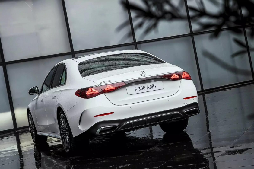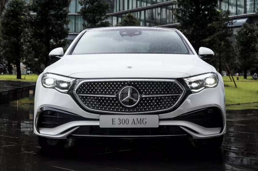 Nhìn từ bên ngoài, chiếc E 300 AMG mới không lột xác hoàn toàn — chủ yếu là cải tiến tinh tế chứ không phải cải tổ. Các điểm mạ chrome, viền sáng ở lưới tản nhiệt, cản trước/sau được làm lại để thêm phần sang trọng — nhưng không biến chiếc sedan này thành “xe khác”.