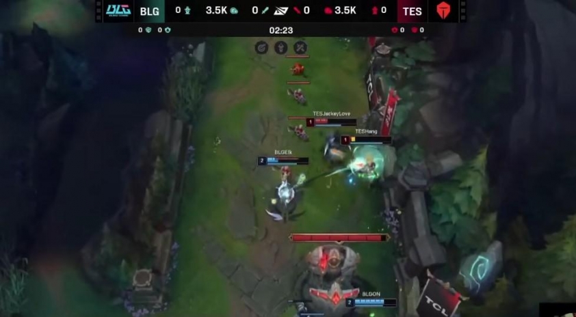 Ngay trong ván đấu mở màn, ở tình huống BLG ON (Leona) cùng ELK dồn ép đường dưới, mọi thứ tưởng chừng đã nằm gọn trong tay BLG. Nhưng khi ON sử dụng combo Q – E để băng trụ, một tình huống bất ngờ xảy ra: trụ bất ngờ chuyển mục tiêu sang ELK thay vì tiếp tục tấn công ON.