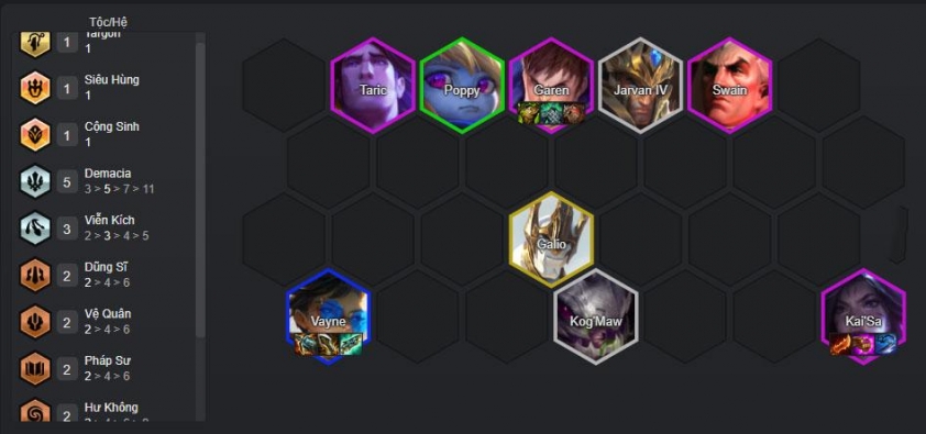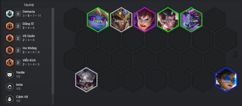 - Khởi đầu với bộ khung Demacia hoặc có nhiều Cung Gỗ