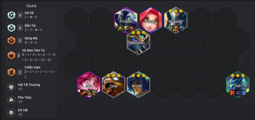 Tính tới thời điểm hiện tại, lối chơi Bắn Tỉa - Hộ Vệ với trung tâm là quân cờ Jhin và K'Sante đang cho thấy sức mạnh vô cùng lớn tại DTCL mùa 15. Đây là dạng đội hình vừa có khả năng chống chịu tốt lẫn lượng sát thương dồi dào từ tuyến sau. Hơn nữa, K'Sante lại đang tỏ ra là chống chịu mạnh hơn Malphite 3 sao ở cuối trận và là quân bài vô cùng quan trọng để vận hành đội hình này.