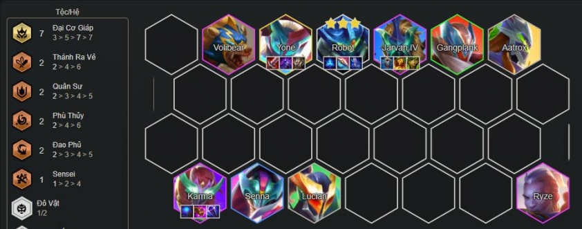 - Thứ tự ưu tiên trang bị: Karma >>> Jarvan IV >>> Yone/Ryze