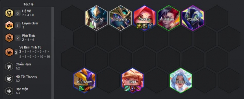 - Sau khi lên cấp độ 7, tập trung reroll lấy Kog'Maw và Ahri 3 sao