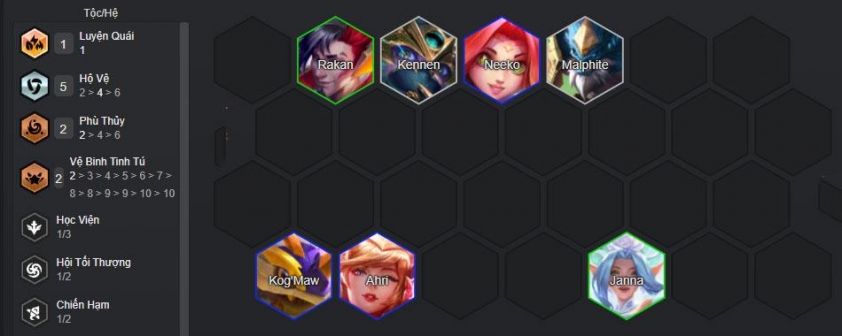 Bắt đầu giao tranh: Tướng Hộ Vệ tạo lá chắn cho bản thân và đồng minh gần nhất bằng 14% máu tối đa của họ. Lá chắn có thể cộng dồn. Nhận 1 Rakan.