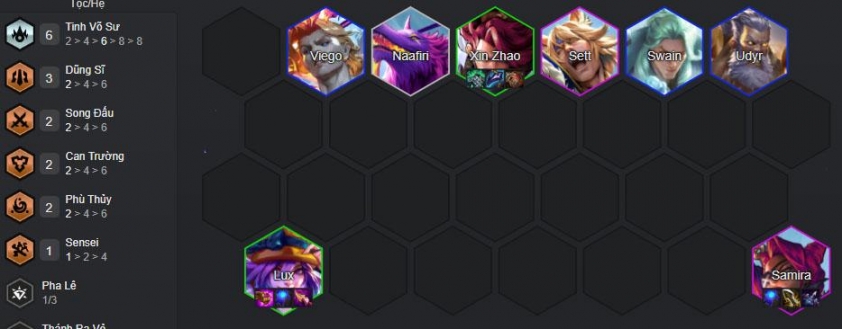 - Nếu lên được cấp 9 thì có thể cân nhắc việc bỏ Swain và thay thế bằng Gwen cũng như mốc 8 Tinh Võ Sư
