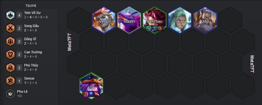 - Sau khi lên cấp 6 tiến hành reroll để nâng Xin Zhao và Lux lên 3 sao