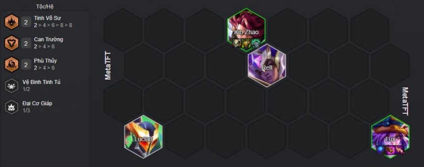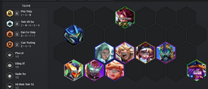 - Sau khi đạt cấp 6, tiến hành reroll lấy Lux và Xin Zhao 3 sao