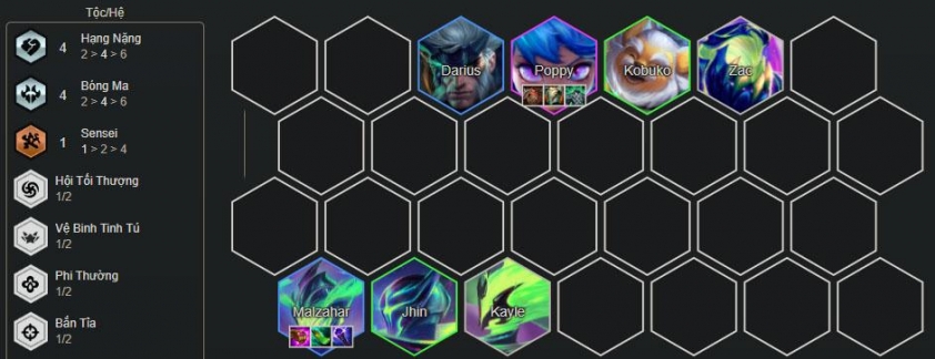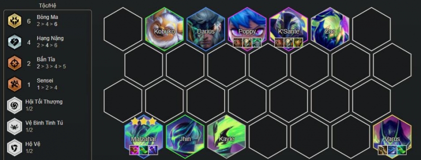 - Sau khi có Malzahar 3 sao, lên cấp 8 và có thể reroll một chút để tìm kiếm Poppy và K'Sante