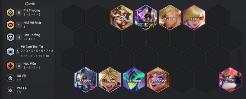 - Ưu tiên trang bị: Rell >>> Syndra >>> Malzahar/Seraphine