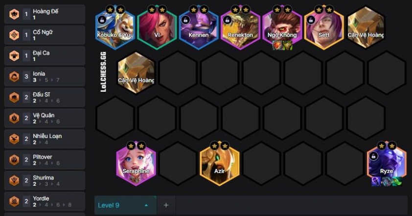 - Lên cấp đều đặn tới cấp độ 9 và bắt đầu reroll tìm kiếm Azir