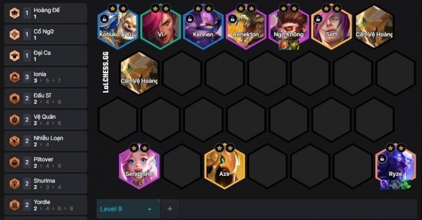 - Lên cấp đều đặn tới cấp độ 9 và bắt đầu reroll tìm kiếm Azir