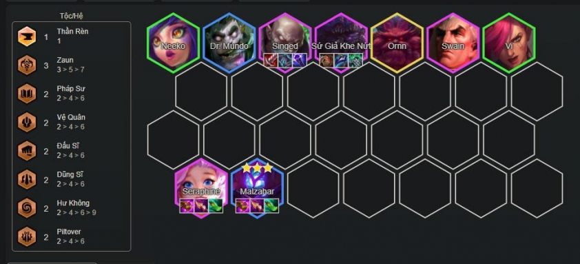 - Thứ tự ưu tiên trang bị: Seraphine/Malzahar >>> Singed >>> Trang bị chống chịu