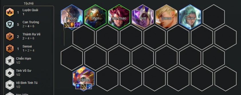 - Sau khi lên cấp 7, tập trung reroll lấy Yasuo và Smolder 3 sao