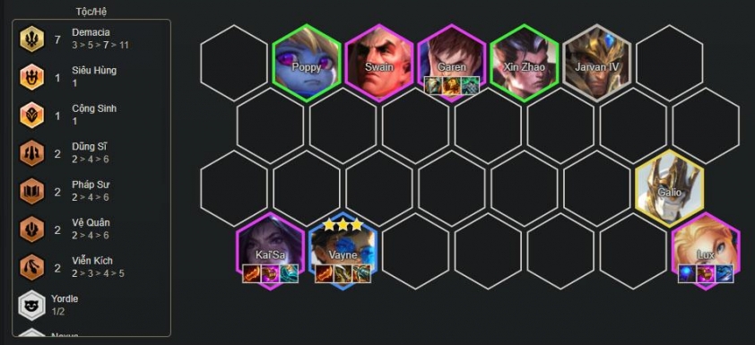 Sau vài ngày DTCL mùa 16 ra mắt, một số game thủ đã dần nhận ra lối chơi hiệu quả nhất của Demacia đó là dựa vào Vayne thay vì Lux. Đáng nói hơn, việc reroll Vayne lên 3 sao sao đó đẩy nhanh lên cấp 8 sẽ giúp game thủ nhanh chóng mở khóa được cả Galio và Kai'Sa. Từ đó đạt đến ngưỡng sức mạnh cực lớn ở thời điểm cấp 8.