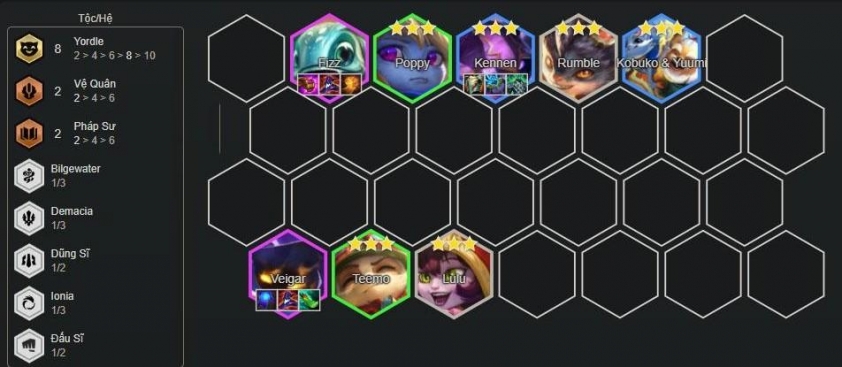 - Sau khi đạt cấp 8, bổ sung Veigar và Fizz để đạt mốc 8 Yordle