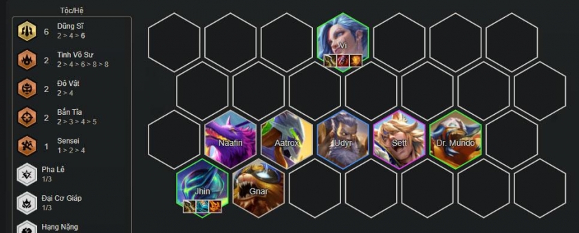 - Thứ tự ưu tiên trang bị: Vi >>> Jhin >>> Sett/Udyr