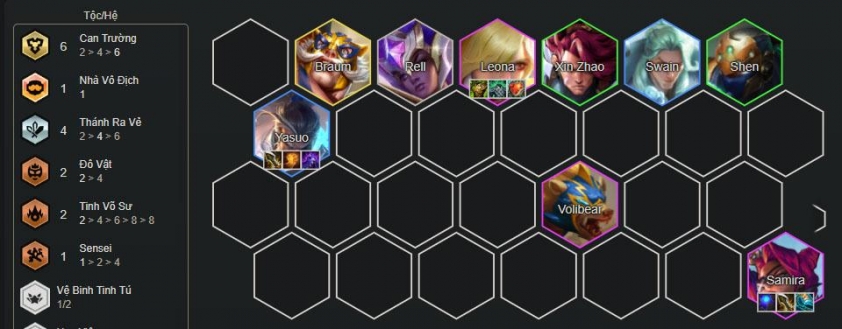 - Thứ tự ưu tiên trang bị: Yasuo >>> Trang bị chống chịu >>> Samira/Volibear