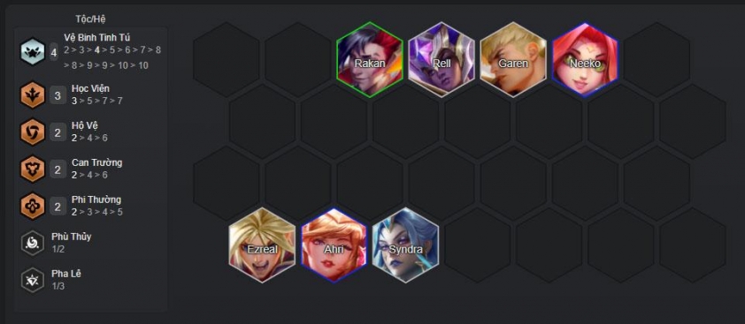 Các tướng Vệ Binh Tinh Tú đứng cạnh ít nhất 1 tướng Vệ Binh Tinh Tú khác nhận 1 hồi năng lượng mỗi giây và 20 giáp/kháng phép.