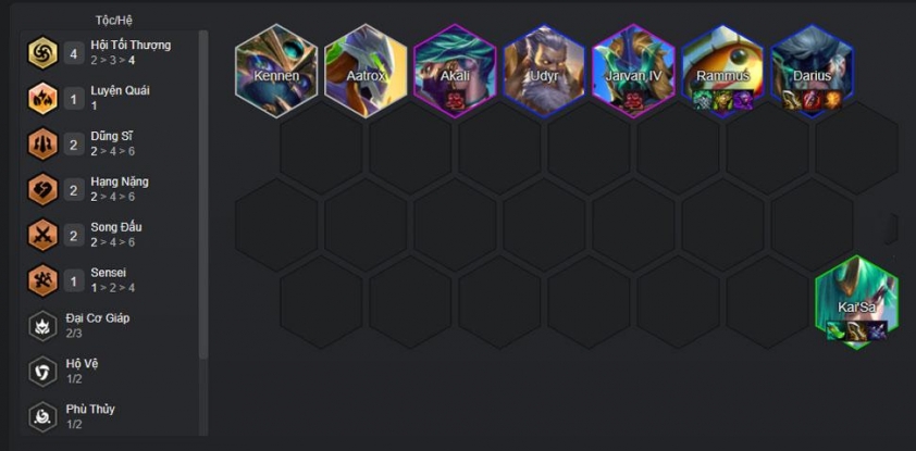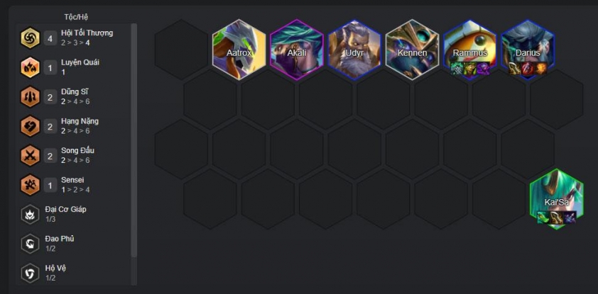 Với một loạt chỉnh sửa của bản 15.2, Kai'Sa lại đang vươn lên đầy mạnh mẽ trong DTCL mùa 15 với lượng sát thương mạnh ở vị trí hàng sau. Hơn nữa, điều này còn giúp cho Akali và Darius có thể dọn dẹp đội hình đối thủ nhanh chóng với khả năng kết liễu mạnh mẽ từ hiệu ứng Hội Tối Thượng.
