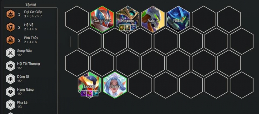 - Reroll tại cấp 5 nhằm nâng cấp Lucian và Kennen lên 3 sao