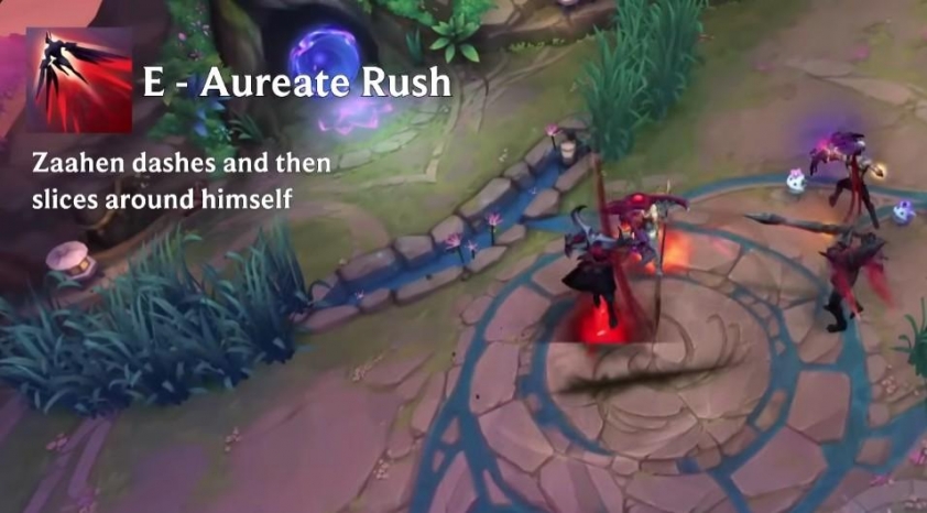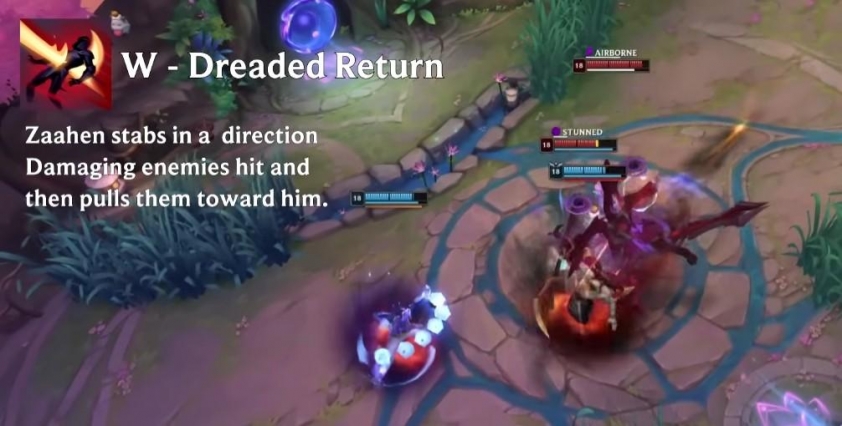 Zaahen đâm về phía trước, gây sát thương và kéo đối thủ về phía mình.