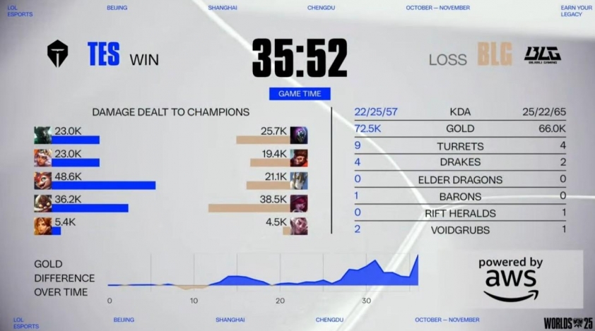 Bước vào loạt Bo5, BLG thể hiện đúng đẳng cấp của mình khi áp đảo TES trong hai ván đầu tiên. Sức mạnh của cặp đôi Bin – Shad0w cùng khả năng di chuyển mạch lạc của Knight khiến TES hoàn toàn lép vế. Lúc này, nhiều người hâm mộ đã nghĩ về một chiến thắng chóng vánh 2-0 cho BLG.