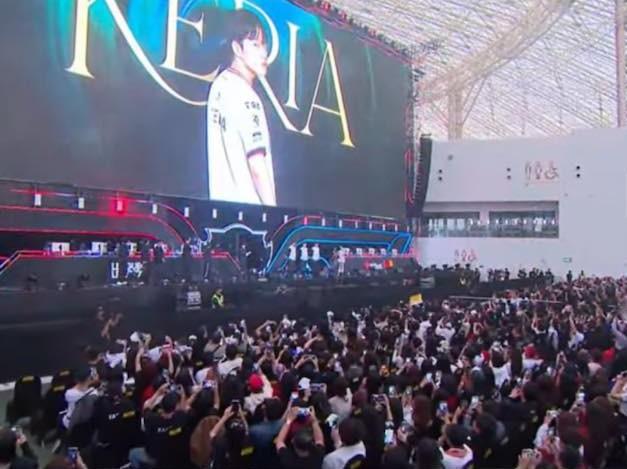 Ngay từ màn ra mắt đầu tiên, sự cố đã xảy ra. MC giới thiệu đầy cảm xúc, đậm chất thơ dành cho Keria, trong khi bảng LED cũng hiển thị hình ảnh của hỗ trợ T1. Thế điều khó hiểu đó là điều phối viên hậu trường lại yêu cầu Peyz bước ra sân khấu chính. Khoảnh khắc lệch pha này khiến cả khán phòng lẫn người xem livestream đều ngỡ ngàng.