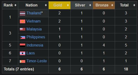Đáng chú ý, phía sau nhóm dẫn đầu là Malaysia và Philippines – mỗi đội đều có 1 HCV và 1 HCB, trong khi Indonesia dù không giành được HCV nhưng lại có tới 5 huy chương, chủ yếu là HCĐ. Điều này càng làm nổi bật sự hiệu quả của Việt Nam khi ít huy chương nhưng chất lượng rất cao.
