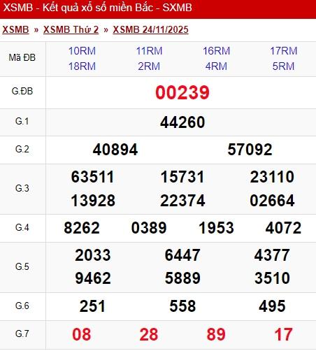 Kết quả xổ số miền Bắc (XSMB) hôm nay ngày 24/11