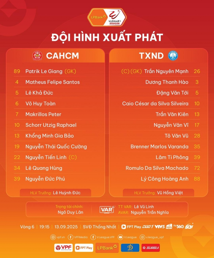 - Thời gian thi đấu: 19h15 ngày 13/9/2025.
