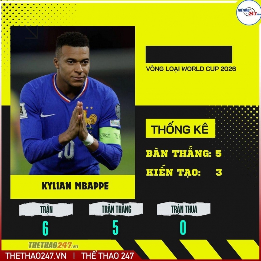 Phong độ xuất sắc của đội trưởng Kylian Mbappe cũng là điều không thể bỏ qua. Với 5 bàn thắng, anh là nguồn cảm hứng lớn nhất trên hàng công và đóng vai trò quyết định trong các trận then chốt. Không chỉ ghi bàn, Mbappe còn thể hiện tầm ảnh hưởng rõ rệt trong lối chơi: kéo giãn hàng thủ, tạo khoảng trống cho đồng đội và mang lại sức công phá mà không đội bóng nào trong bảng có thể kiểm soát trọn vẹn.
