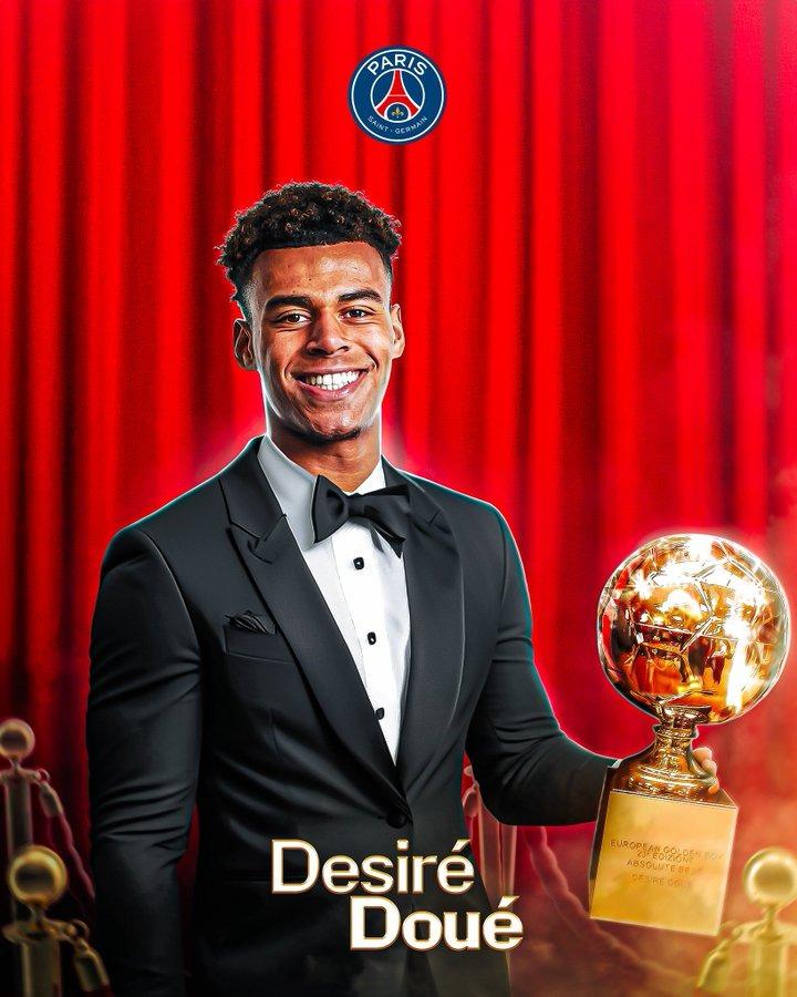 Ngôi sao trẻ PSG, Desire Doue, vừa được vinh danh Golden Boy 2025 sau mùa giải xuất sắc, ghi 16 bàn, 16 kiến tạo và góp công lớn giúp PSG giành cú ăn ba quốc nội và lần đầu lên ngôi tại Champions League.