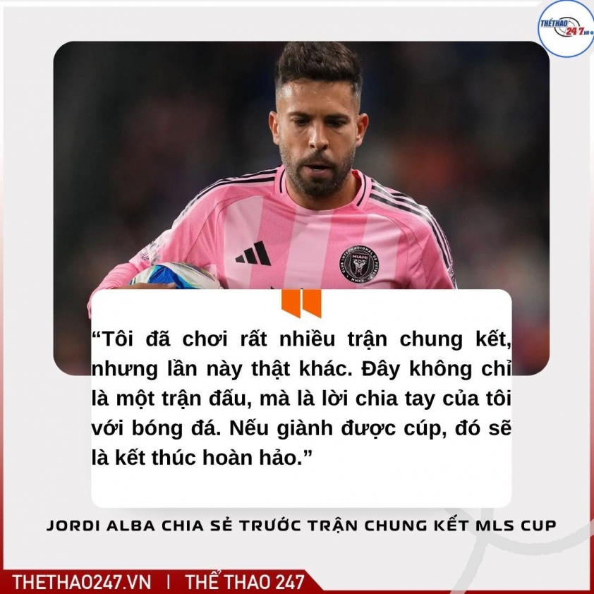 Trước thềm chung kết MLS Cup 2025, Jordi Alba xúc động chia sẻ trận đấu với Vancouver Whitecaps sẽ là lần ra sân cuối cùng trong sự nghiệp lẫy lừng của anh cùng Inter Miami.