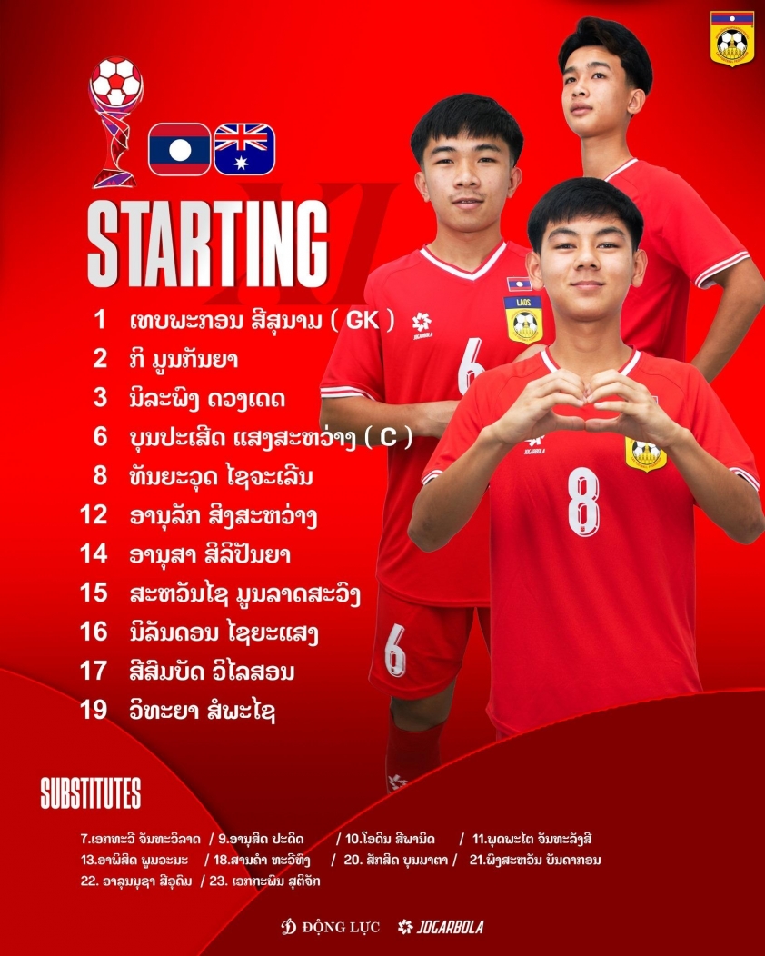Đội hình dự kiến U17 Lào vs U17 Australia