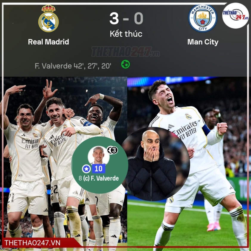 Trong cuộc tiếp đón Man City trên sân Bernabeu, Valverde trở thành tâm điểm với phong độ bùng nổ. Tiền vệ sinh năm 1998 mở tỷ số sau khi tận dụng đường chuyền dài chuẩn xác của thủ môn Thibaut Courtois. Không lâu sau đó, anh tiếp tục nhân đôi cách biệt nhờ pha phối hợp ăn ý với Vinicius Junior.